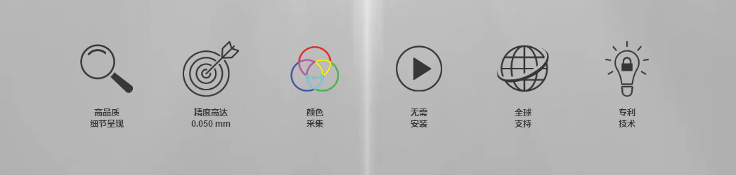 < 傻瓜式彩色數(shù)據(jù)采集 < 一般物體可以在 5 分鐘或更短的時間內(nèi)完成掃描 < 專業(yè)級測量