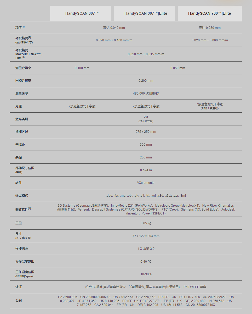 HandySCAN 3D 的技術(shù)規(guī)格使其成為便攜式 3D 測(cè)量技術(shù)的行業(yè)典范。